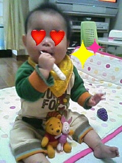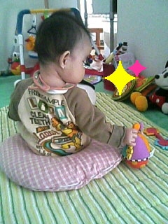 円座クッションに座ってサッシーのおもちゃを掴んでます 相変わらず、すごいほっぺしてます 話は変わって、香川県今日は花粉が多いです 目は痒いし、鼻は痒いし、鼻は垂れるし、くしゃみはでるし、口の中は痒いし。。。 明け方から苦しくて(w_-; ウゥ・・ 嫌な季節がとうとうやってまいりました 覚悟しとかねば .☆.+:^ヽ(∇^*)o【♪祝♪】o(*^∇)ノ^;+.☆. 息子も今日で9ヶ月になりました 毎度の事ながら、ほんとに早い。。。 9~10ヶ月検診に行かなくてはいけないんですが、低出生体重児なので出産予定日にあわせていってこようと思います というわけで、3月に入ってから行ってこようかな さてさて、最近の息子はというと。。。 『ヨシッ!!ヨシッ!!』 ってよく言うんです(笑) どうやら口癖のようで