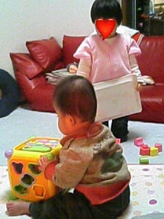 そして、今日の息子はというと。。。 さっきまでMちゃんが我家に来て一緒に遊んでいました Mちゃんはアンパンマンで楽しそうに遊んでいました。 すると息子、お決まりの ガブッ!!!!!