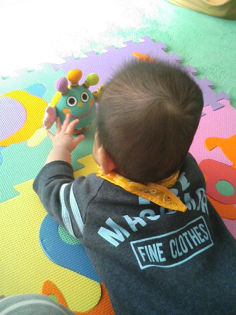 息子も昨日で7ヶ月になりました 早いものです。。。 昨日は7ヶ月記念の写真を撮ろうと思いながら、熱の出ていた私はすっかり撮るのを忘れていました 今日は忘れずに撮るぞ 昨日は母が帰ってから、おもちゃと携帯の着うたで息子のご機嫌をとるのに必死でした どうやら息子はムッシュかまやつさんの歌う『親カバママのうた』も好きなようです(笑) CMソングが好きなのかなぁ? 今auでは無料でダウンロードできますよ~