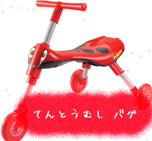 ![]() 久々の石拾いで気合が入っていたようです(笑) さてさて。。。 本屋でちょこっと立ち読みしてて、ちょっと変わった三輪車を発見 ![]() その名は、 ![]() スクートルバグ![]() ![]() 拡大するとこんな感じ ![]() ユニークで、私の中ではかなりヒットしました ![]() ![]() ちょうど三輪車の購入も考えてたし。。 欲しい。。。 ![]() ![]() ![]() この三輪車、こんな風↓に簡単に折りたためるし 軽量だし、室内で使っても床に傷がつかないらしい ![]() ![]() ![]() でもね、最近の三輪車みたいに大人が持って押すところがついてないんですよね~ ![]() "ノ(-________-;)ウゥーム・・・ 今日、父ちゃんが出張から帰ってくるから要相談だわ ![]() ぺらぺらうどんのご応募について![]() たくさんのご応募ありがとうございました ![]() 昨日で応募期間は終わったので、 後日息子に抽選してもらって、発表しますので少々お待ちを ![]()
