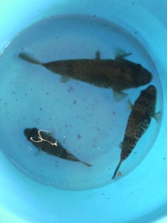 ![]() ![]() なので、コメントの返事遅れてしまってごめんなさい ![]() 実家ではちょっと早めの息子の誕生パーティーをしてきましたよ ![]() その事は5月15日までのお楽しみということで。。。 ![]() ![]() さてさて、実家では久しぶりの釣りを楽しんできました ![]() ![]() ギリギリ (;`ー´)o/ ̄ ̄ ̄ ̄~ >°))))彡 例の麦わら帽子は忘れずに持っていったのに、愛用の子供釣竿を忘れてしまって。。。 ![]() じいちゃんが私と旦那に釣竿を買ってくれました ![]() ありがたやぁぁ(-∧-)合掌・・・ 2時間弱の釣りの成果は。。。 河豚三匹 ![]() ![]() ![]() メバル狙いだったのに。。。 ヾ(´ε`;)ゝ ふぅ。。。 大きい河豚は私 ![]() 小さい河豚2匹は旦那 ![]() 数では負けたけど、でかさでは今回も私の勝利 ![]() ![]() ![]() そしてこの大きい河豚。。。 すっごい釣れ方しました(-ω☆)キラリ わかりますかぁ? デジカメで撮ったのがあるのですが、デジカメが行方不明なので、とりあえず携帯で撮ったのを。。。 デジカメが見つかったら明日UPします ![]() 河豚の背中に注目してください ![]() 針が背中にかかったようで(笑) 私、この大きな河豚を背中で釣り上げました (ΦωΦ)ふふふ・・・・ なんともミラクルな釣れ方でしょ(笑) せっかく釣れたので息子に見せようと思い持ち帰ると、息子さん触ろうとしてましたよ ![]() そんな河豚さん。。。 その後じいちゃんの手によって、調理されましたぁぁぁああ ![]() ![]() ![]() 夜のおかずになりましたよ 食べたのは私と旦那だけ。。。(笑)身がしまっていて、やっぱり河豚はおいしい ![]() ![]() 息子さんはというと。。。マミイのおまけを早速お味見しておりました( ̄∇ ̄+) キラキラキラ~♪ PR 昨日息子のオムツを替えようと思い寝転がすと