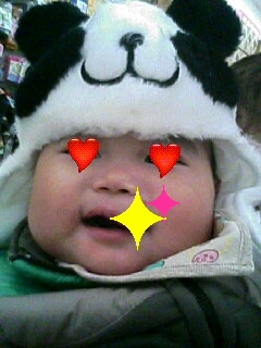 パンダとサルに変身~!!!!! \(\◇ ̄ )ヘン~(  ̄▽/)ゝシン!!! \(○ `O´ ○)/トゥーー!! 息子もまんざらでもなさそう。。。(-ω☆) そんな息子の姿を見てじいちゃんばあちゃん大喜び ばあちゃん:『これ買う?』 じいちゃん:『こんなん買ってもかぶらんやろぉ 。。。。。。。。。。 結局買いませんでしたけどね(笑) 他にも服をたくさん買ってくれたので、また後日ブログにのせま~す