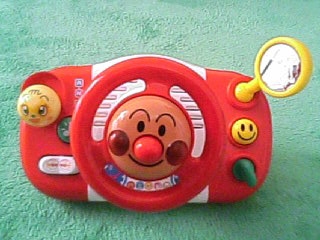 しばらくするとプップ~♪ とクラクションの音が Σ('◇'*)エェッ!? これアンパンマンの鼻がクラクションになっています 息子は器用に食べながら押したようで。。。 歯茎で押したのか舌で押したのか(笑) その辺は謎に包まれております (・-・)・・・ん?