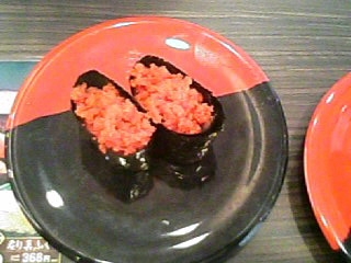 今日は回転寿司に行ってきました かなり久しぶりです 同じアパート人から新しく回転寿司ができたというのを聞いていきたかったので早速。。。 平日の昼間ということもあって、 お客さんはあまりいませんでした なので、ゆっくり食べれました 久々の回転寿司 うまかったぁぁぁ ←ししゃもの卵です。。。 これはイマイチだったなぁ