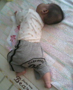 昨日の夕方に寝返りに成功しました 旦那の同僚Aさんの家に遊びに行ってきました その後もことあるごとに『あ"う"ぅぅぅ』と唸り、 ヘッドバッキングがあきると、ジャングルジムまでハイハイしていき、 あとはあらゆるものを叩き、何でも食べ・・・( ̄∇ ̄)←こんな顔してました(笑) なんとも逞しい。。。 Sちゃん見てたらおもしろいわぁ 台風が近づいてますねぇ た~らこ~ た~らこ~ たっぷり た~らこ♪ 今巷で大人気のCMソング♪v(*'-^*)ゞ^;*・'゜☆ そんな時は、私の携帯の着うた『たらこ・たらこ・たらこ』の登場です 昨日、同じアパートのSちゃん家に遊びに行ってきましたヾ(@⌒▽⌒@)ノ 『う゛ぅぅぅぅぅ~』 と唸りながらハイハイをしているんです(笑) Sちゃんと私は二人そろって『あ゛~!!!』と声を上げました 今朝、実家から船に乗って帰ってきました では、本題に戻ります。 首もしっかりすわって、寝返りもくるくるしている赤ちゃんがいました うちの息子は寝返りはしそうでしないし、首は座ってないし・・・ 体重は6500gでした だから、首すわりもすべてちょっと遅めなのかも 四ヶ月児検診が始まるくらいに息子のお腹がへる時間だったんです「(´へ`; 食欲よりも睡眠欲の強い息子は、眠りを妨げられるのが大嫌い 身長体重測定が終わって、保健師さんが首すわりや目で物を追うかというチェックをするのですが、ご機嫌斜めな息子はいまいち乗り気じゃなく、目で物は(" ̄д ̄)けっ! 見たいな感じで追ってました(笑) 一通り検診が終わり、保健師さんとお話をしていると。。。臭い!! やりやがったぁぁぁぁぁ 息子が涼しい顔してプッ とりあえず、無事に検診終了です