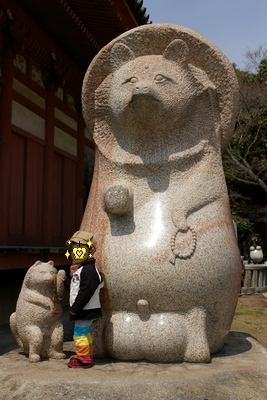 ![]() ![]() ![]() 毎度のことながら早すぎ~ ![]() さてさて昨日の続きです ![]() 屋島 には、水族館やお寺等があります ![]() まずは 四国八十八ヶ所巡り の八十四番札所の 屋島寺 を参拝 ![]() この鳥居は蓑山大明神。 家庭円満・縁結び・水商売の神様らしいです ![]() ![]() ![]() 家庭円満とか縁結びというだけあってか 左にはオス狸、右にはメス狸がおりました ![]() ![]() ![]() 下の写真をみてわかる通り、オス狸にはシンボルがついております(笑) メス狸は残念ながら写真はないのですが、片乳だけありました なぜ片乳だけ。。。 息子さんは鳥居を歩いたり、子狸に夢中 ![]() ![]() じいちゃんとおばちゃんとお水を触って楽しんだりもしてました ![]() ここで父と妹が登場したので、今回屋島に行ったメンバーをご紹介 ![]() って、いつも通りの旦那・私・息子・父・母・妹です ![]() ![]() ![]() この後、屋島名物かわら投げ~ ![]() ![]() ![]() 合戦に勝った源氏の将兵が陣笠を山上から投げて勝どきをあげた古事にならい、 小さな素焼きのカワラケを投げ飛距離を競うもので、屋島名物の一つ。 遠投力ではなく風にうまく乗せるのがコツ。 戦勝にちなみ、受験の合格祈願にも霊験があるとか。 父ちゃん、振りかぶって。。。 投げました~ ![]() 瓦見えるかなぁ? 写真の上の真ん中辺りの灰色の丸い物体がそうです ![]() なかなかの飛距離です(笑) 息子もみんな投げたので、これでみ~んな ![]() 開運厄除け![]() です![]() 屋島編は明日で終わります ![]() ではでは。。。