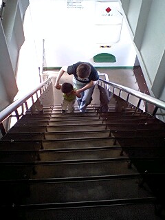 普通にハンドルが付いてる場所に座らすと、 最初は機嫌よくハンドルを回して乗ってるんですが しばらくすると下りて、カゴを乗せるところを持って キャラクターカートをひたすら押し続けるんです ![]() でね、昨日は↓に乗せてみました(笑) ※良い子はまねしないでね。 おとなしい。。。 全然暴れない。。。 試食のパンまで食ってるし(笑) じいちゃんが、『今度からここに乗せたらラクやなぁ(笑)』って言ってました(爆) 確かに、私もそう思った。。。 ![]() ![]() そして、実家へ帰るフェリーの中 ![]() 毎度毎度の事なんですが、 直島へ着くまでの1時間。。。 ひたすらフェリーの中を歩き続けます ![]() いつもばあちゃんを誘ってウロウロ ![]() しかも息子さん、フェリーの中での付き人はばあちゃんじゃないとダメみたいです(笑) ばあちゃん限定です(爆) ばあちゃん、いつもお疲れ様です ![]() ![]() そしてじいちゃん。。。 『こいつがじっとしてる時は、寝てるときだけや 』だって(笑) 私も同感。。。